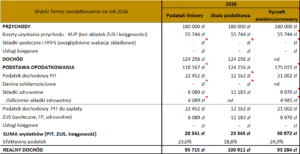 Przykładowe zestawienie porównujące trzy formy opodatkowania: